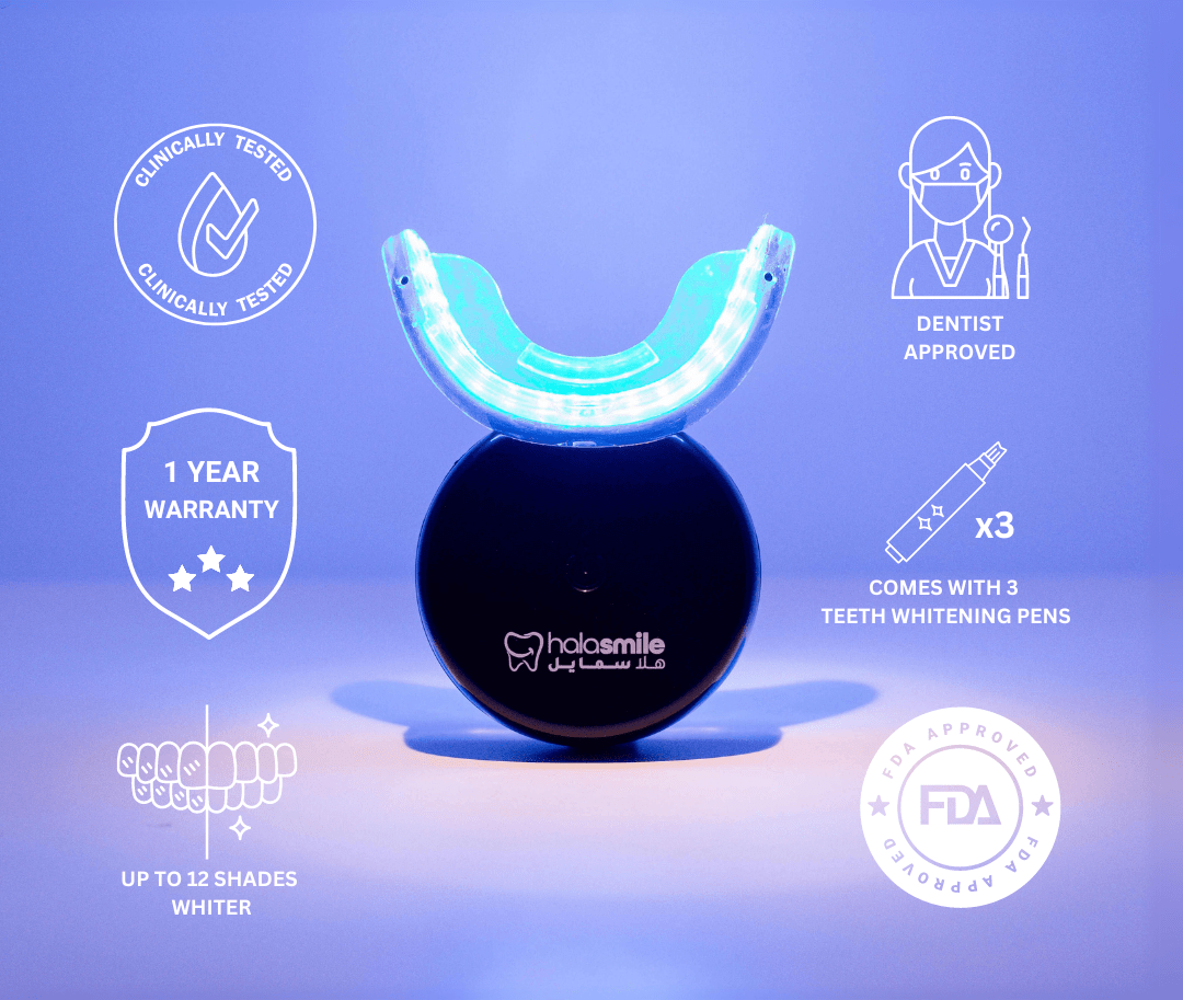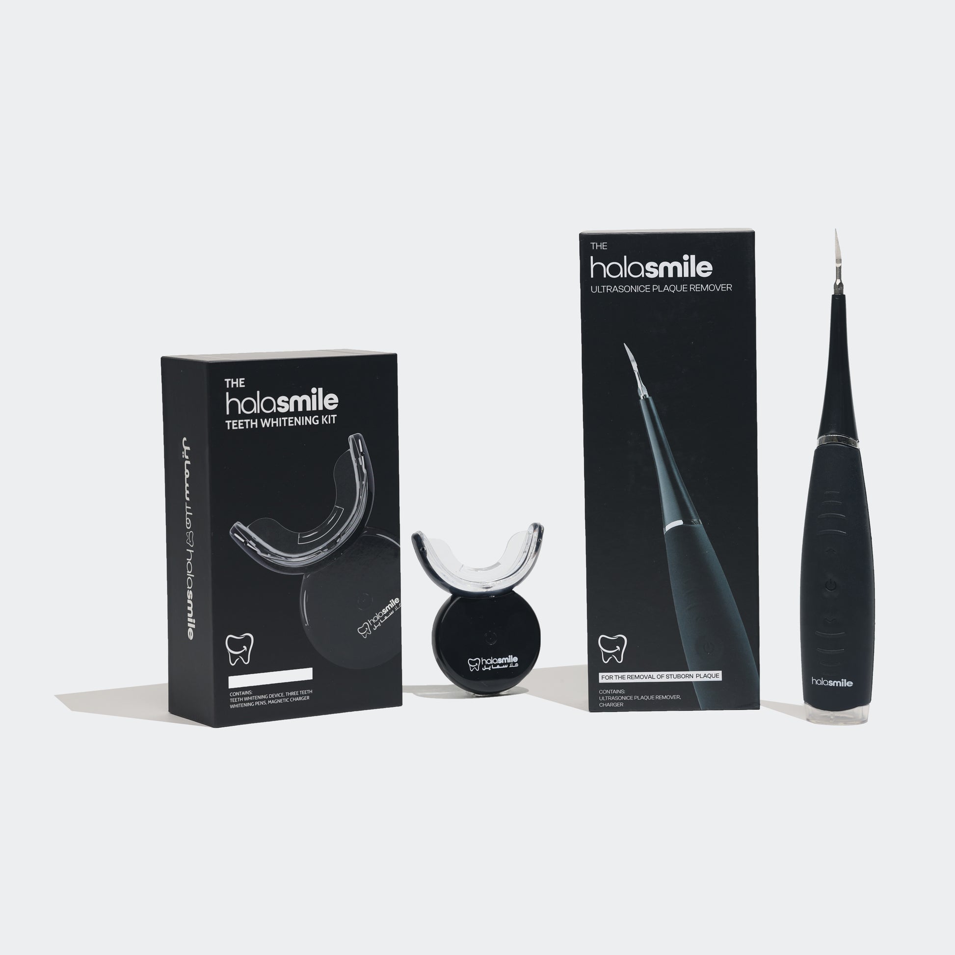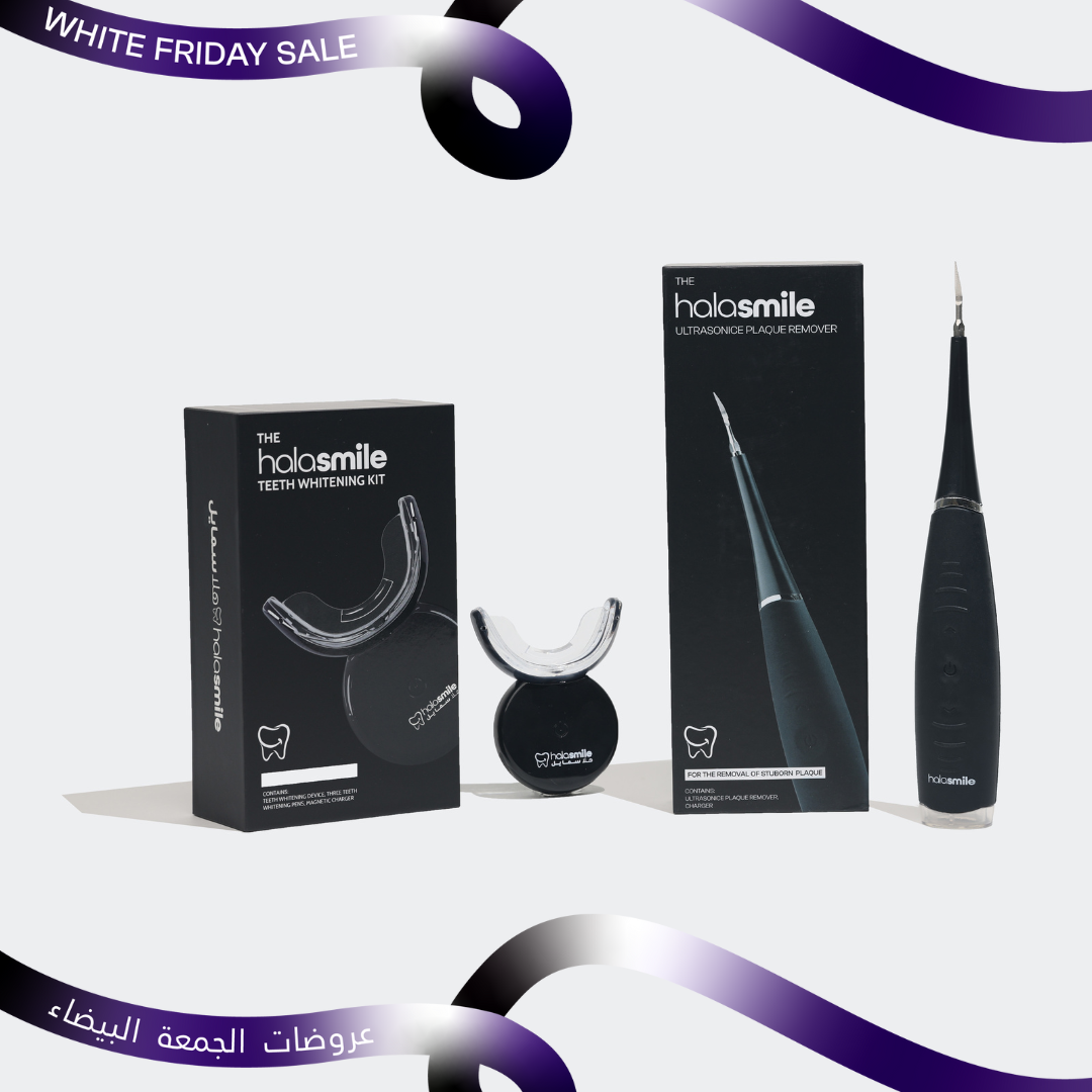 جهاز التبييض + جهاز إزالة البلاك = ابتسامة أحلى ونفس أنعش! وفّر مع الباقة المميزة، واحصل على أسنان أفتح حتى 12 درجة وراحة من الجير بنسبة 99٪!